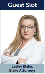 Lesley Blake studied at Wits University and was admitted as an attorney in 1995. Her practice consists of service to the SMME market – general legal advice, collections, drafting agreements and general litigation. The practice is also slanted towards Family Law...